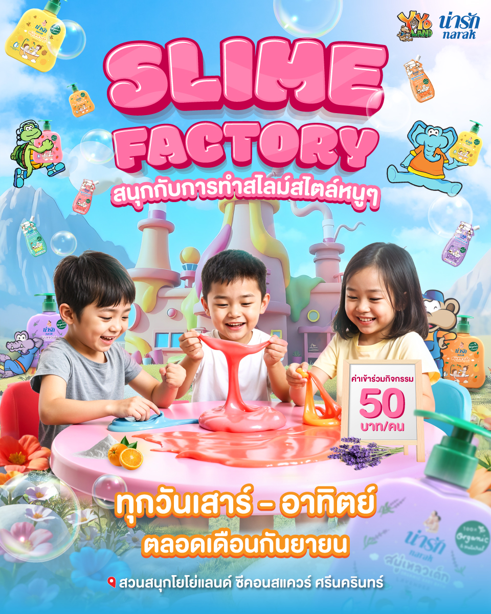 ✨ โยโย่แลนด์ x แบรนด์น่ารัก ✨ ชวนหนูๆ มาสนุกกับกิจกรรมสุดฟิน "Slime Factory" ที่ให้น้องๆทำสไลม์เด้งดึ๋ง จากผลิตภัณฑ์ออร์แกนิคของทางแบรนด์กับกลิ่นที่บ่งบอกสไตล์น้องๆ ที่ทั้งหอม และสีสันสดใส พร้อมได้สไลม์กลับบ้านไปแบบฟินๆ