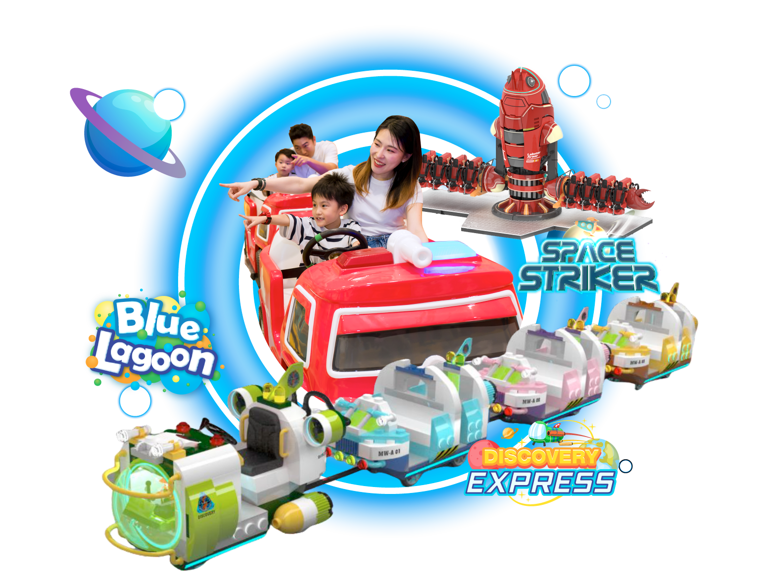 พบกับเครื่องเล่นแสนสนุก หลากหลายโซน มันส์ เร้าใจ มากมาย อาทิ Blue Lagoon, Space Striker, Discovery Express และเครื่องเล่นอีกมากมาย